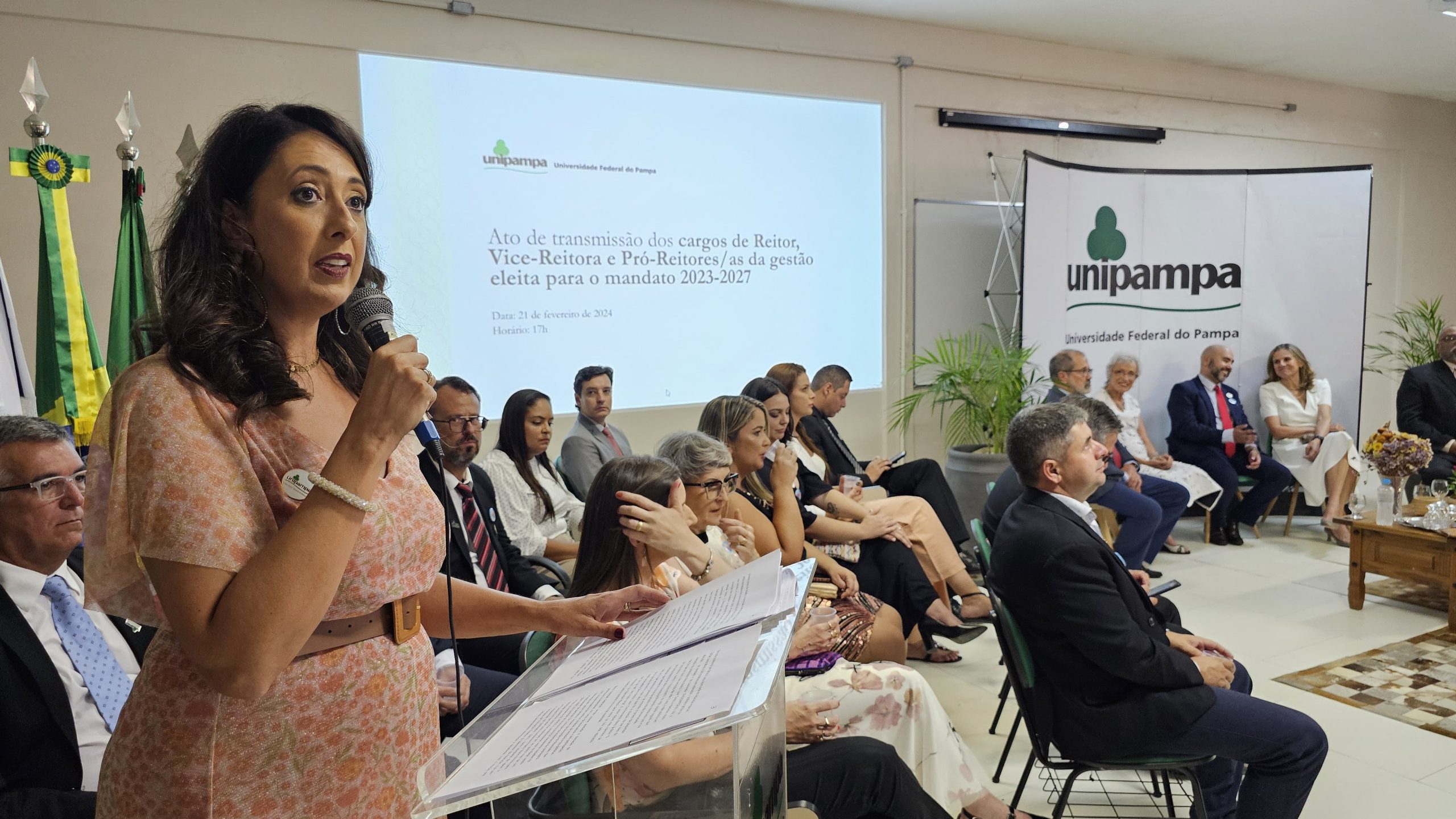 Durante o evento, os ex-reitores, reitor e vice-reitora fizeram pronunciamentos. A reitora pro tempore da Unipampa, Maria Beatriz Luce, e também responsável pelo projeto de implantação da Instituição, ressaltou a gratidão por ser parte deste processo, pois consolida o fundamento que sempre aplicou em sua trajetória: “planejamento de gestão da educação pública, gratuita e de qualidade”. A professora ressalta que trabalhar no projeto da Unipampa foi um desafio, “o projeto mais complexo que se teve até hoje na constituição do sistema nacional de universidades federais, ou seja, dez campi ao mesmo tempo. Essa região foi muito ambiciosa e a articulação política foi muito extensa”.