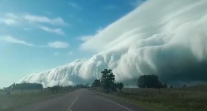 Moradores do departamento uruguaio de Cerro Largo, perto da fronteira com o Brasil, se viram espantados com uma formação de nebulosidade rente à superfície que se registrou na manhã desta quarta-feira com a chegada de uma frente fria à região. As imagens gravadas em uma estrada do departamento mais pareciam um “tsunami de nuvens” avançando no horizonte.
