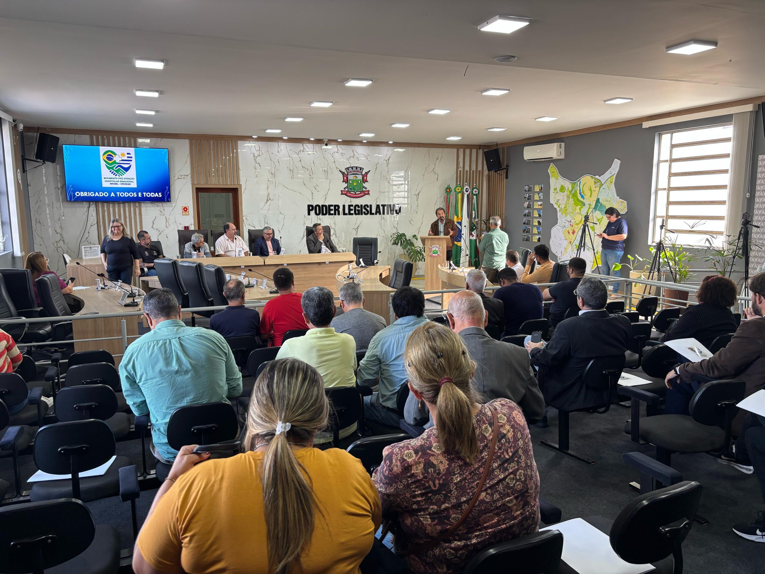 A Câmara Municipal de Vereadores de Sant’Ana do Livramento sediou, na manhã desta quinta-feira (3) o lançamento do Movimento Pró Atenção Hospitalar Binacional. A iniciativa, proposta pelo vereador Dagberto Reis (PT), visa debater e viabilizar a criação de serviços de saúde integrados entre a cidade brasileira e Rivera, no Uruguai.