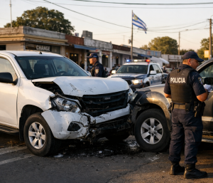 Uma mulher de 54 anos, de nacionalidade brasileira, ficou ferida na tarde da última terça-feira (20) após um acidente de trânsito na cidade de Rivera. A colisão envolveu uma caminhonete com matrícula uruguaia, que transportava produtos de contrabando, e um veículo com placa brasileira. O condutor da caminhonete, um homem de 31 anos, foi detido.
