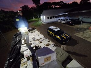 Durante operação de combate a crimes fronteiriços, os policiais abordaram um caminhão Mercedes Benz, emplacado em Uruguaiana, e um Focus, de Jaraguá do Sul/SC, que trafegavam juntos pela BR 472. Ao vistoriariam a carga do caminhão, os PRFs descobriram que o veículo estava carregado com mercadorias estrangeiras, entre bebidas, roupas, perfumaria e cosméticos em geral, sem nenhum documento fiscal de importação.