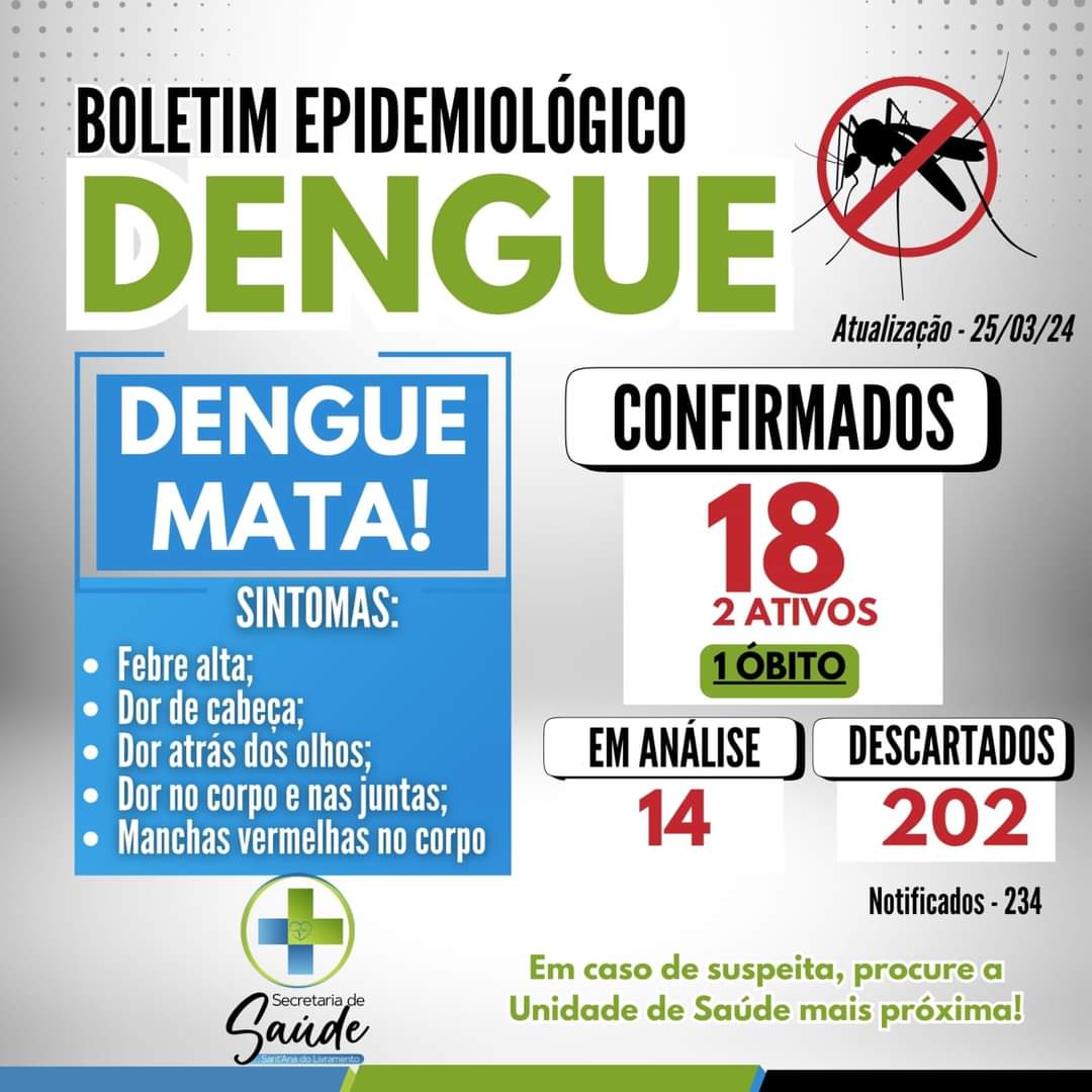 Atualmente, a cidade tem 18 casos confirmados de Dengue e um número significativo de focos em praticamente todos os bairros. Agentes da vigilância, em parceria com homens do Exército Brasileiro, tem acentuado as ações em áreas consideradas agudas, especialmente naquelas onde ocorreram as confirmações mais recentes.